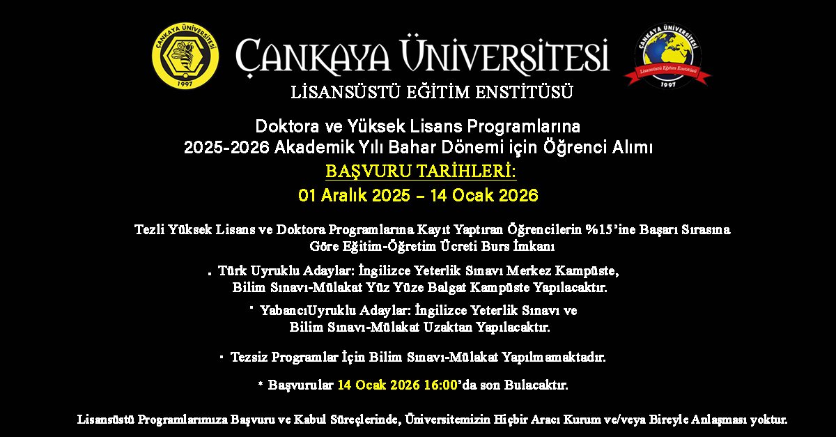 Yüksek Lisans ve Doktora Programlarına Başvurular Devam Ediyor