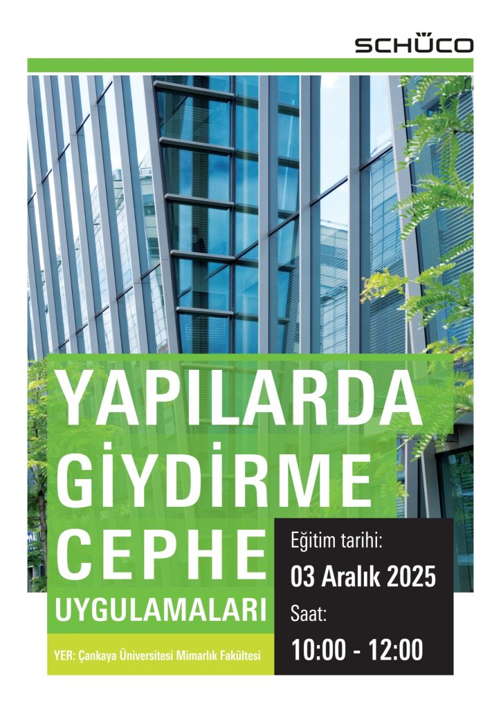 Schüco tarafından stüdyo 108’de “Yapılarda Giydirme Cephe Uygulamaları” başlıklı bir eğitim etkinliği düzenlenecektir.